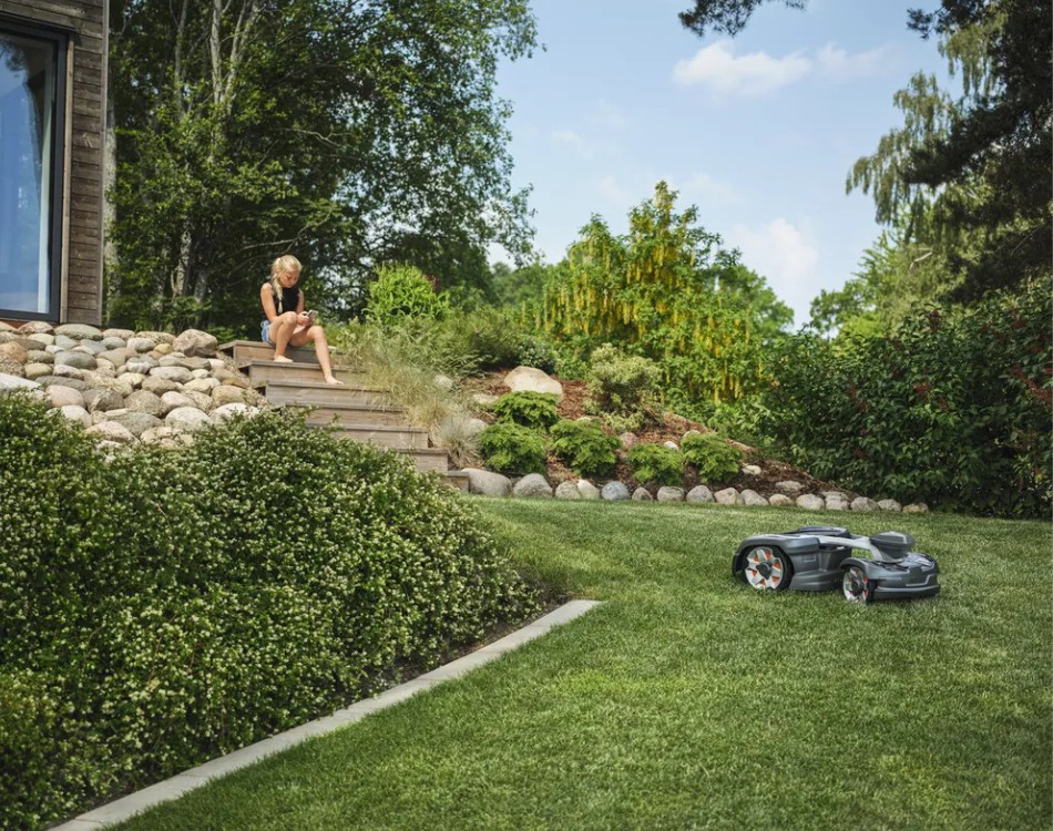 Husqvarna Automower® 435X AWD NERA con tecnologia senza filo perimetrale è un robot tagliaerba che offre eccellenti prestazioni in pendenza e la capacità di affrontare terreni accidentati e prati fino a 3500 m².